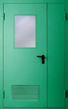 Полуторапольная противопожарная дверь с вентиляцией и стеклом EI 60 (RAL 6024)