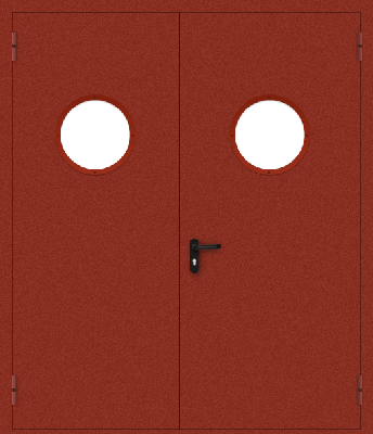 Двупольные противопожарные двери с круглыми стеклами в Солнечногорске