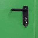 Однопольная противопожарная дверь c круглым стеклом (порошок / зеленая)