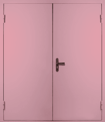В двупольных металлических технических дверях одна из створок всегда снабжается двумя фиксирующими элементами. Если нужно сделать проход шире, штыри вынимаются.